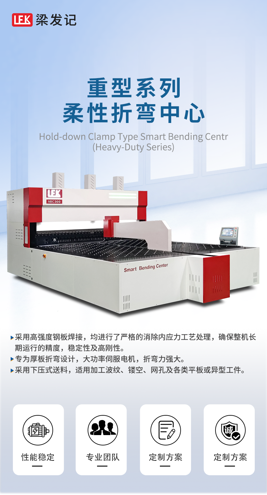 3.柔性折彎中心--重型系列采用下壓式送料,適用加工波紋、鏤空、網(wǎng)孔及各類平板或異型工件。